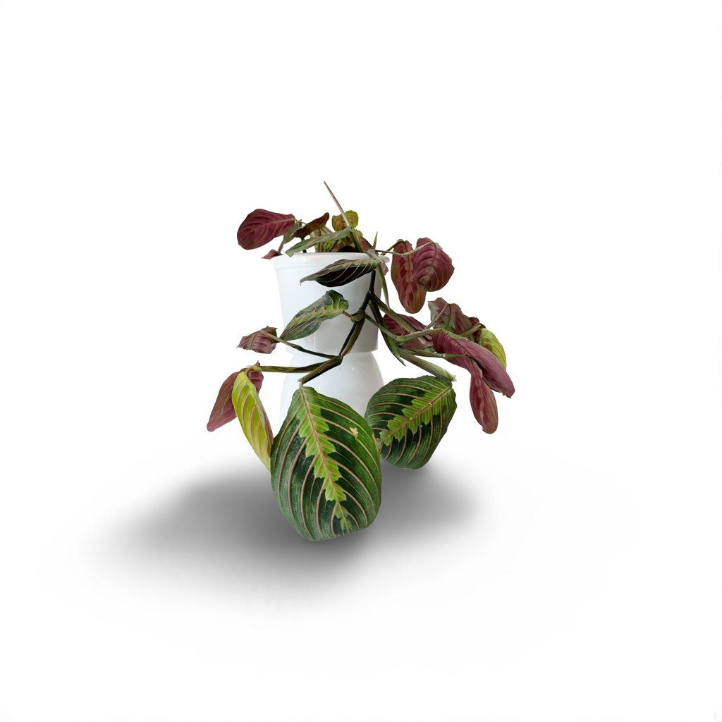 Это яркий представитель триколоров. Основной фон листовой пластины – темный зеленый, иногда коричневатый. К краям листья светлеют. По центру проходит светлая полоса, от которой расходятся выраженные поперечные жилы. Они окрашены в красный, насыщенность которого меняется от совсем бледного до глубокого пурпурного. Еще одна особенность – ломаное направление стеблей.Главным врагом маранты и многих других цветущих растений из тропиков считается паутинный клещ. Он поражает куст во время засухи летом, поэтому старайтесь почаще опрыскивать листья в жару. Главный признак паутинного клеща – это пересыхание листовой пластины и наличие небольшой паутинки на внутренней стороне листвы. С этим насекомым борются при помощи акарицидов