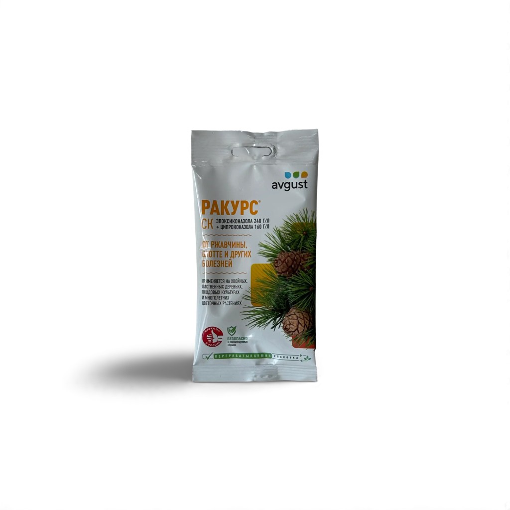 Ռակուրսը դեկորատիվ և պտղատու ծառերի սնկային հիվանդությունների՝ (ալրացող, Շյուտտե, ժանգ,տերևային բծեր), դեմ պայքարի միջոց է:Ֆունգիցիդի զանգվածը 4 մլ է, նախատեսված 5 լ ջրի համար:Ազդման շրջանը 20 օր: